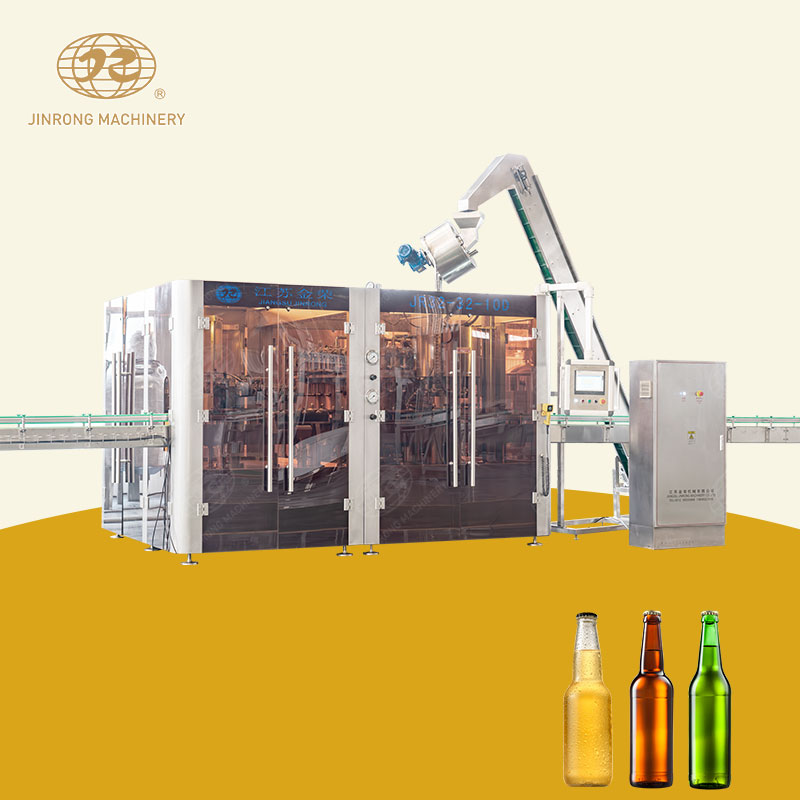 玻璃瓶碳酸飲料灌裝生產線是一種自動化流水生產線,主要用于灌裝生產玻璃瓶裝的含有二氧化碳氣體飲料,如可樂飲料、汽水、氣泡水、蘇打水等。整個碳酸飲料灌裝機一般包括三個單元:清洗單元、灌裝單元、封蓋單元。灌裝速度為2000BPH-36000BPH可設計適用于冠蓋、鋁蓋,可以根據用戶要求來設計相應的瓶型及容量。