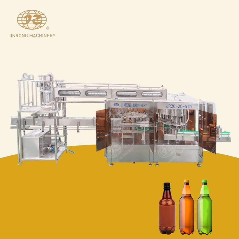 PET瓶啤酒灌裝生產(chǎn)線在灌裝前對PET瓶進行沖洗,以去除瓶內(nèi)的雜質(zhì)和殘留物,確保啤酒的純凈度和口感。